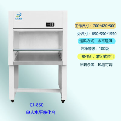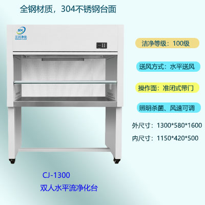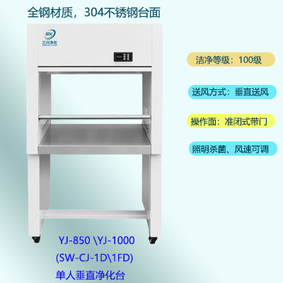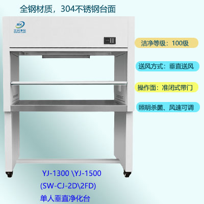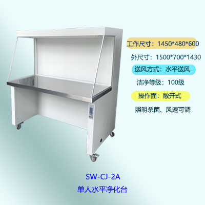 雙人單面垂直流型,準閉合式臺面,上下推拉玻璃門隨意固定,有效防止外部氣體誘入和操作區異味對人體的傷害 |